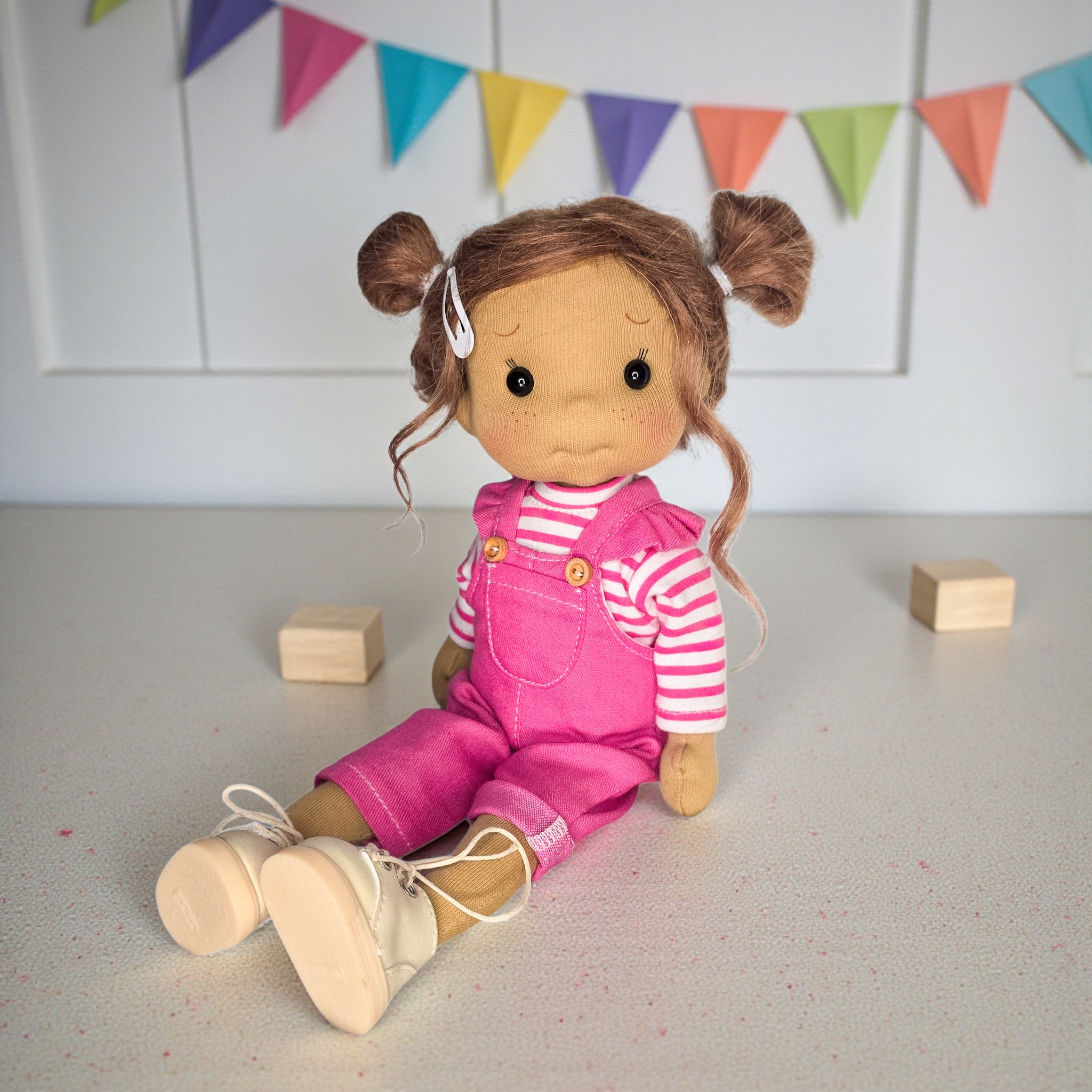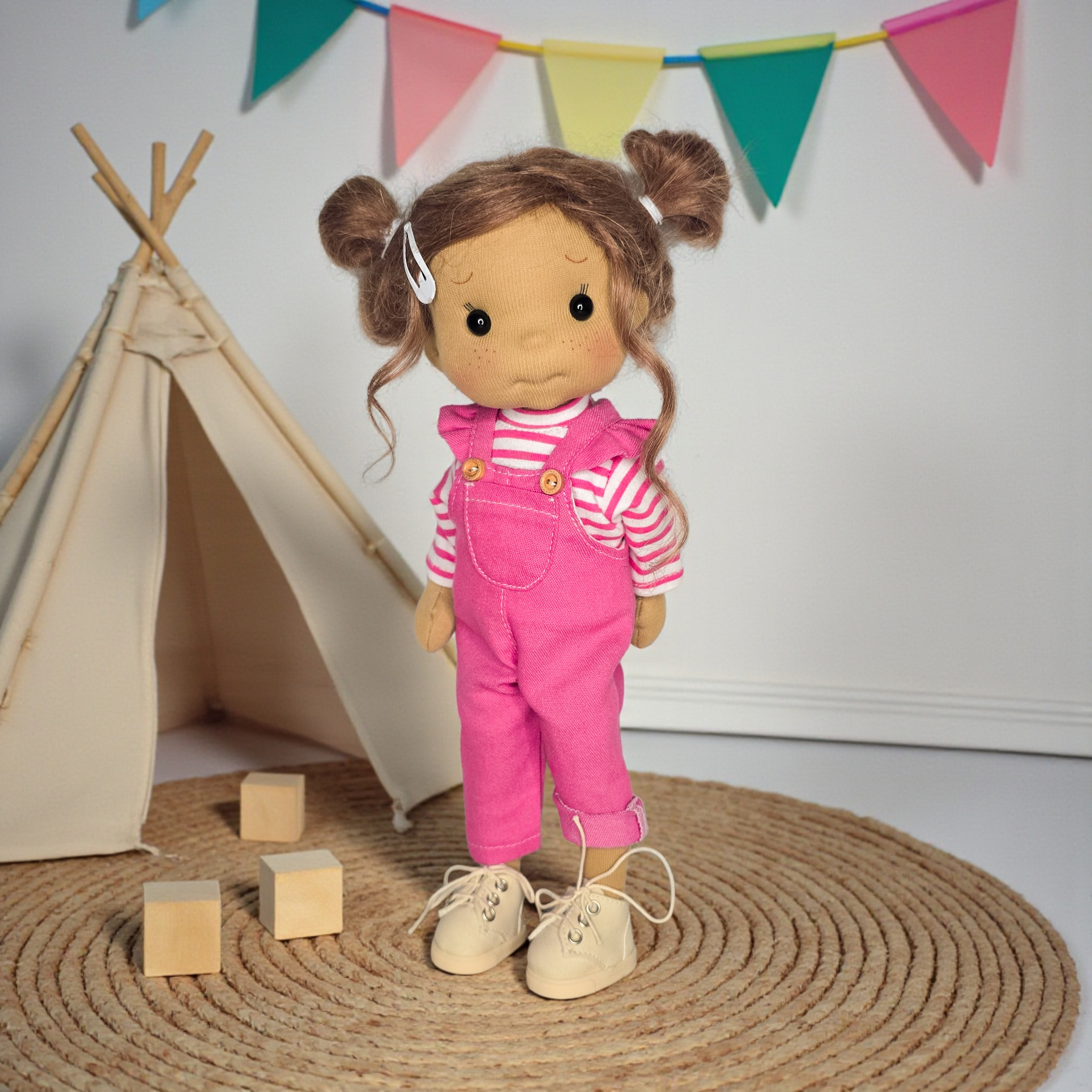 Lalka jest uszyta w całości ręcznie z organicznej bawełny, jest miła i przyjemna w dotyku. Ma tylko 25 centymetrów, jej ubranka są zdejmowane, co pozwala utrzymać lalkę w czystości.