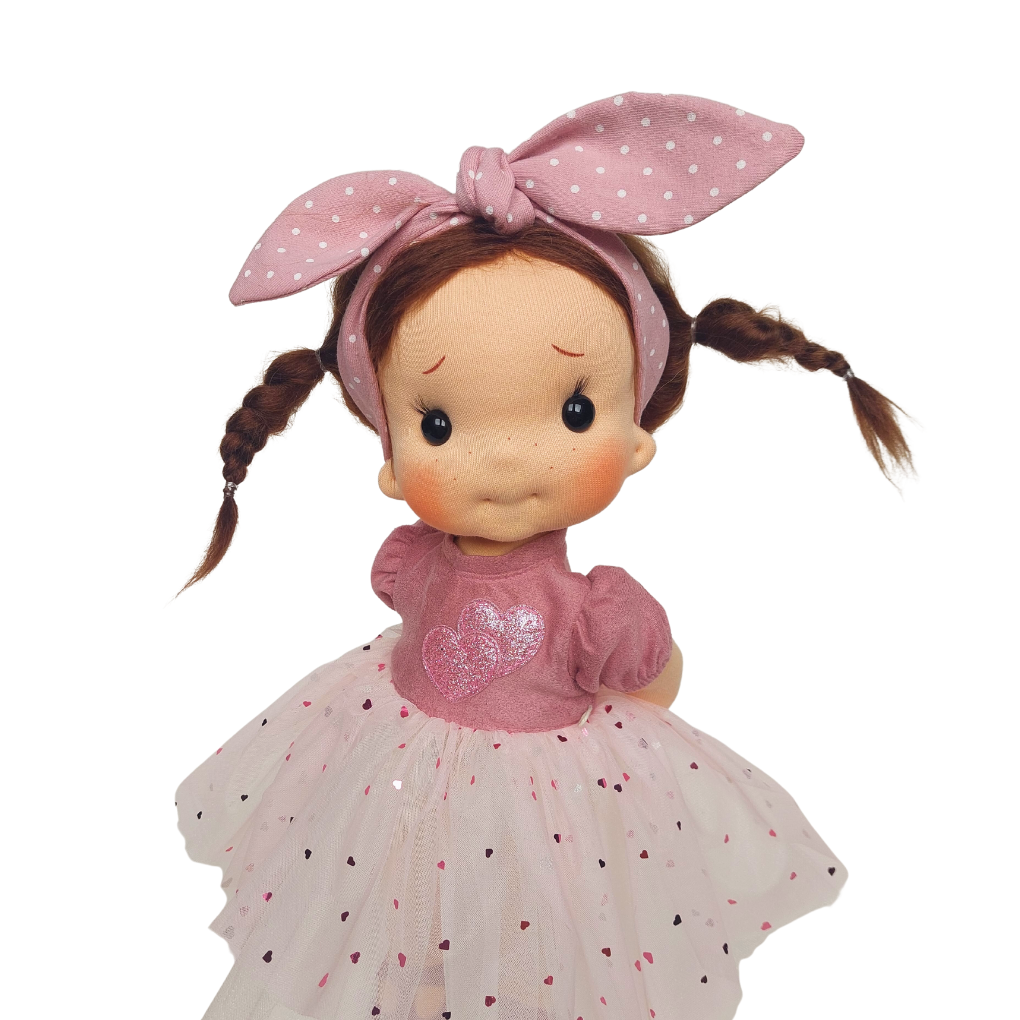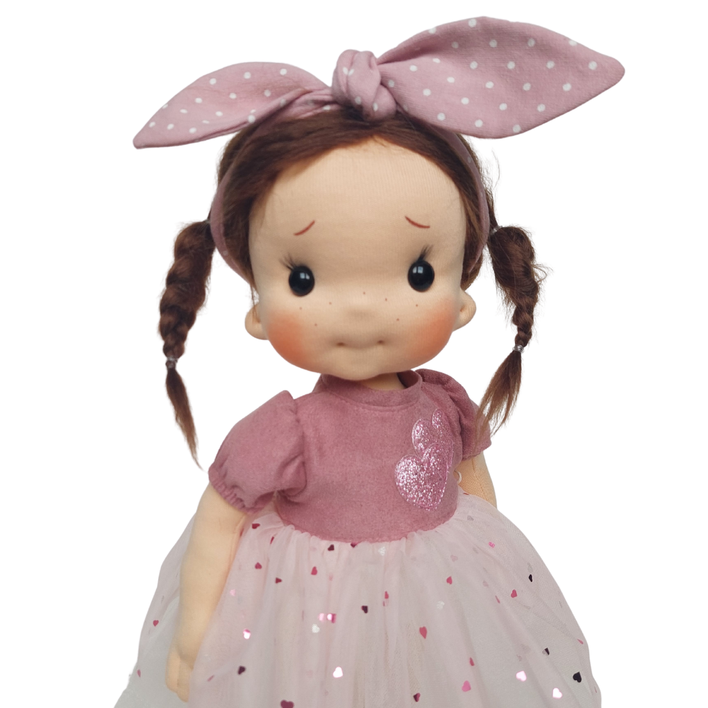 Lola - ręcznie szyta szmaciana lalka z organicznej bawełny.